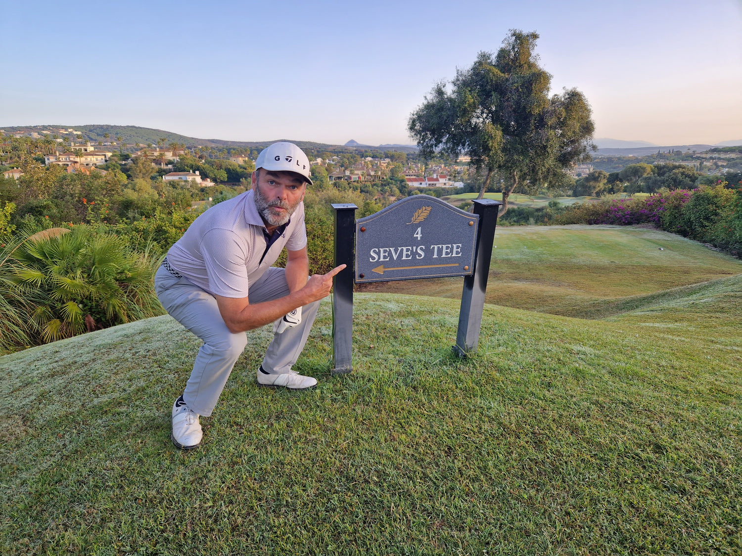 Here I am by Seve's Tee on the par 3 4th hole on San Roque's New Course. Big carry from there!